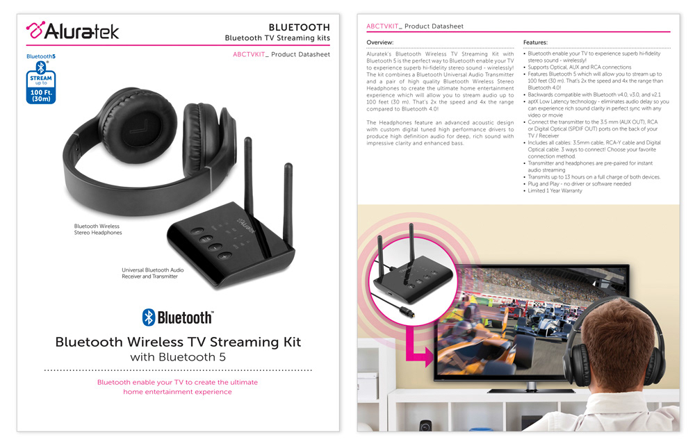 Aluratek - Bluetooth TV Streaming Kit Data sheet
